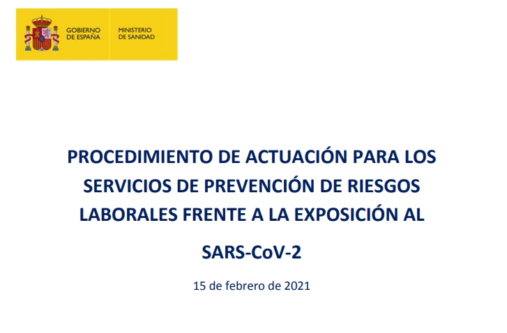 El Ministerio de Sanidad ha publicado, con fecha 15 de febrero de 2021, la actualización de "Procedimiento de actuación de los Servicios de Prevención Ajenos frente a la exposición al SARS-CoV-2". Descargar