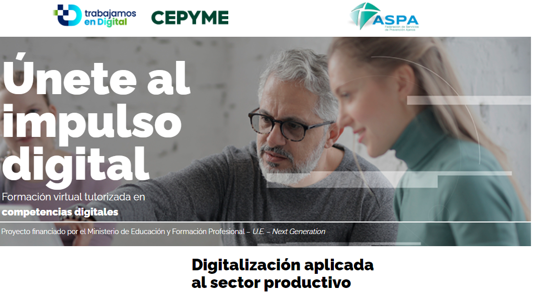 Curso sin coste para SPA. DIGITALIZACIÓN APLICADA AL SECTOR PRODUCTIVO.